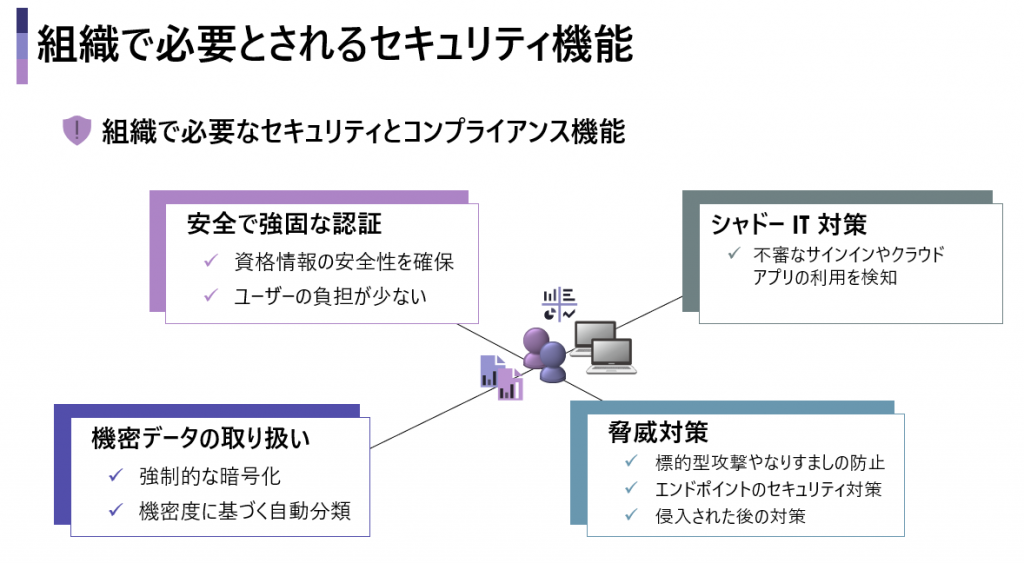 Microsoft 365 では、組織をサイバー攻撃から守るために多くのサービスが用意されています。ここではその代表的なものを紹介します。
